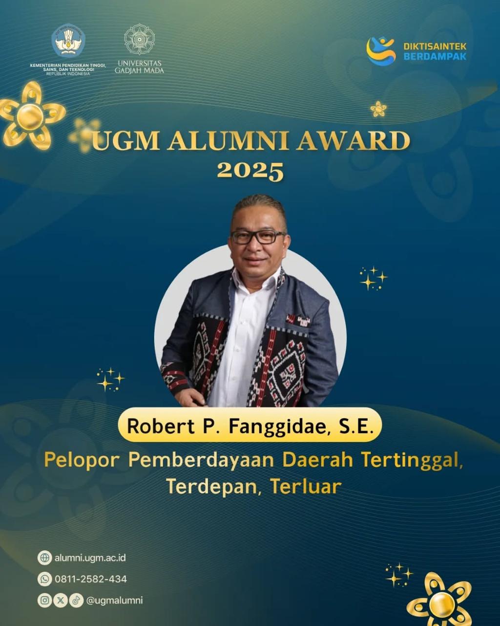 UGM Nobatkan Robert P. Fanggidae sebagai Penerima UGM Alumni Awards 2025 untuk Kategori Pelopor Ekonomi Daerah 3T